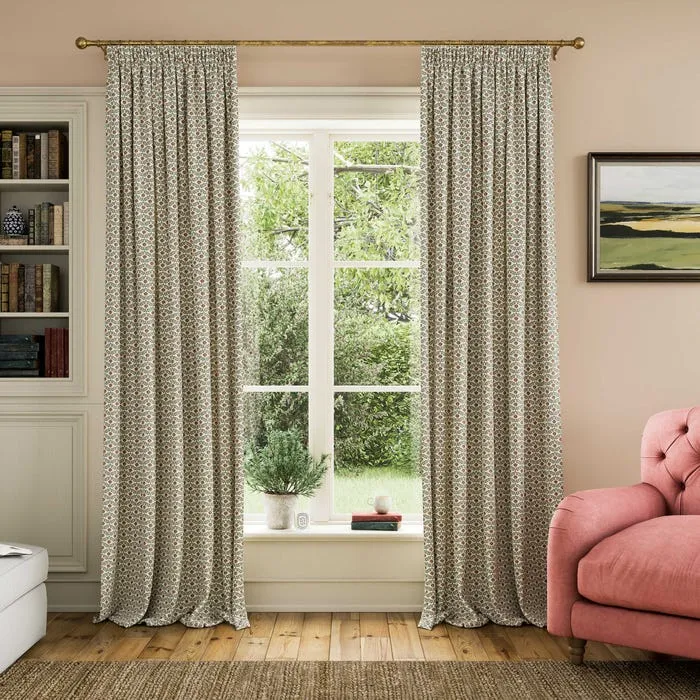 Floral Foulard curtains in creme bring elegance to your living room. Made from 100% cotton with pencil pleat header. Striped lining ensures privacy and perfect drape.