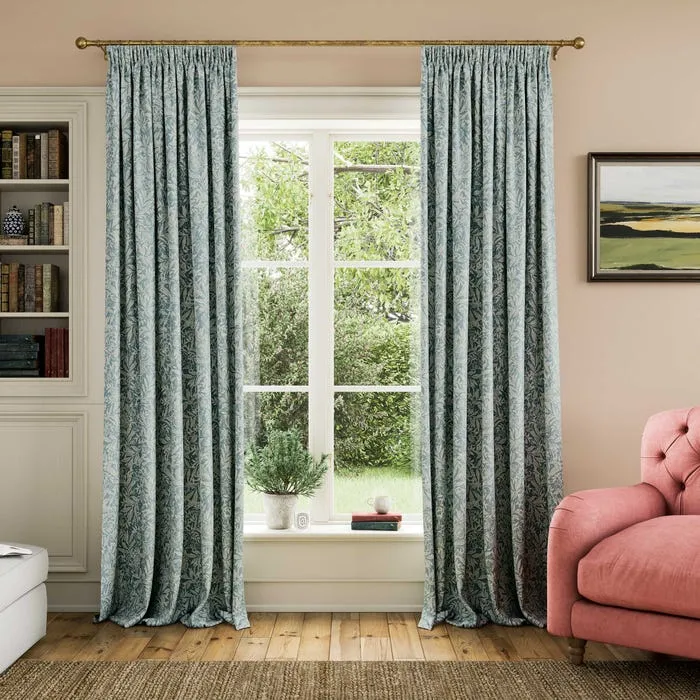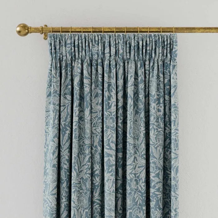 Twilight Ditsy curtains in duck egg bring countryside charm to your living room. Two-toned floral print on 100% cotton. Striped lining with a pencil pleat header ensures privacy and perfect drape.