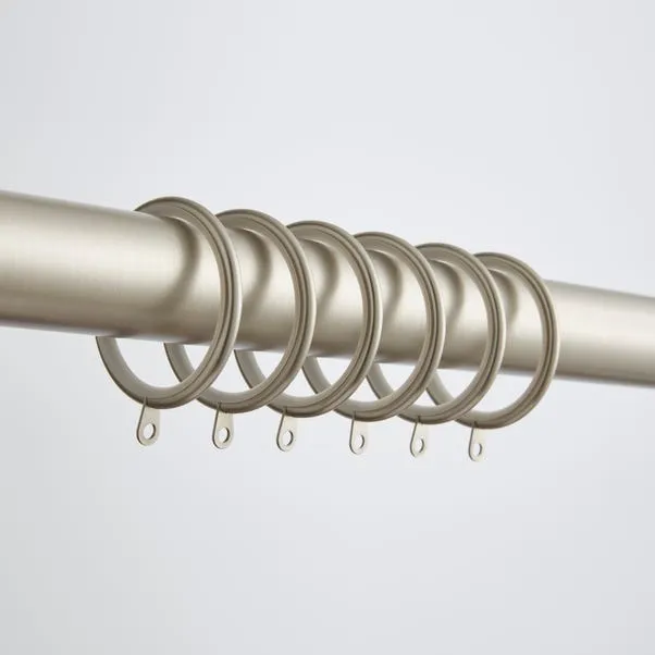 This pack of 6 lined metal curtain rings is designed to match metal curtain poles. Available in multiple finishes, they ensure smooth curtain movement while providing a neat and coordinated window appearance.