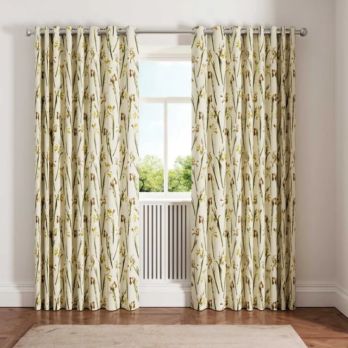 Add a natural touch with Wild Iris curtains in linen. Subtle iris floral pattern, fully lined for a graceful drape, and finished with matte silver eyelets for easy hanging. Modern, fresh, and understated elegance.