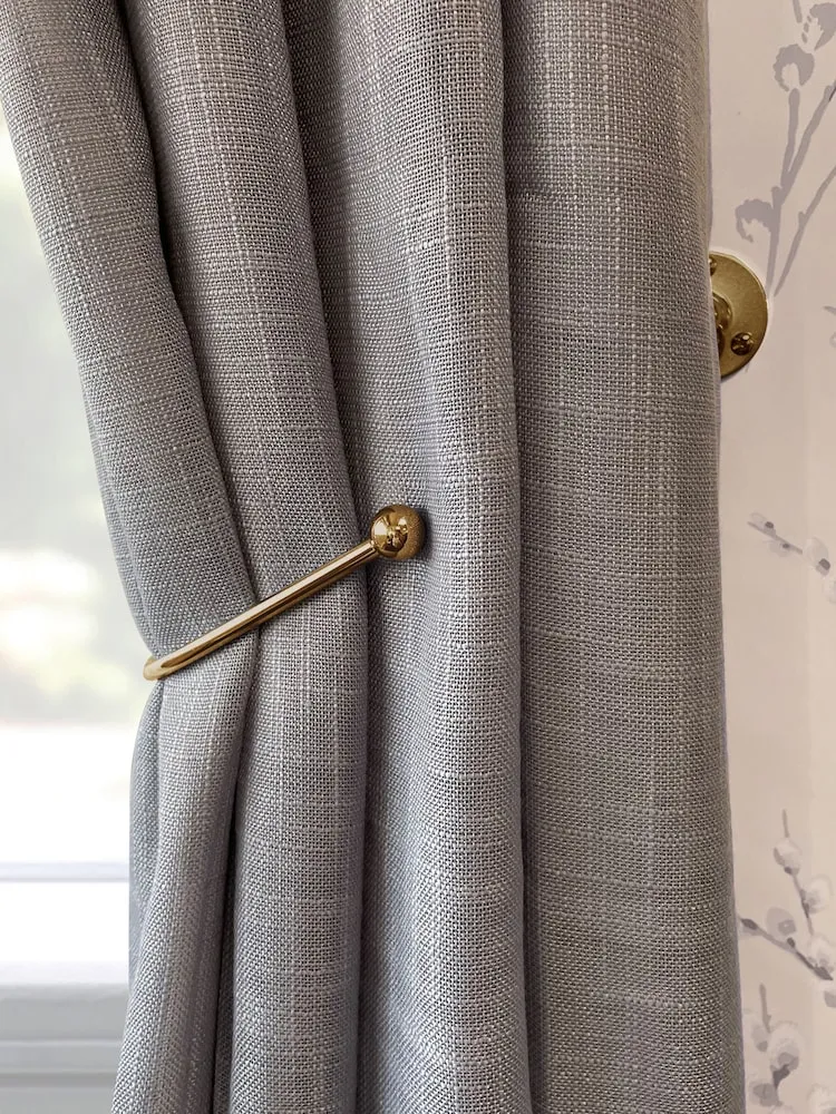 These modern swing arm curtain holders offer flexible movement for a relaxed and elegant look. When not in use, the arm rests neatly behind the curtain, helping maintain a tidy and well-arranged appearance.