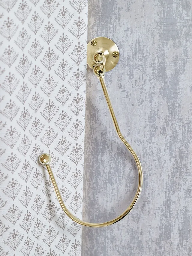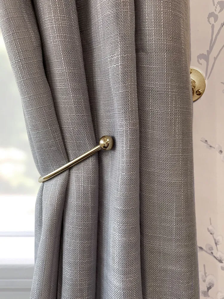 These swing style curtain holders allow flexible movement for a relaxed and casual look. The arm sits neatly behind the curtain when not in use, helping keep curtains arranged and stylish.